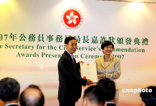 特區行政長官曾蔭權出席典禮并向獲嘉許狀的公務員祝賀。