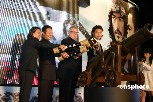 年底最矚目的華語大片《投名狀》十八日晚在臺北舉行了首映禮。導演陳可辛帶領片中明星李連杰、金城武等人參加首映會,并點燃禮花慶祝。中新社發 陳國華 攝