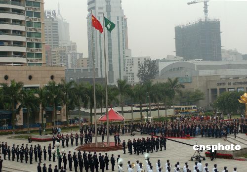 澳門舉行慶;貧w祖國八周年升旗儀式