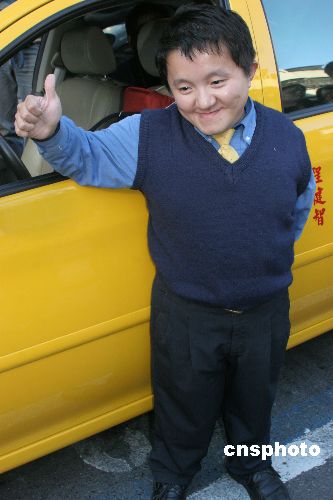 身高只有一米二三的程健智是臺灣最矮的計程車司機,他罹患俗稱“玻璃娃娃”的先天成骨不全癥罕見疾病,身材特別矮小,為此,考駕照兩次才取得一般駕照、出租車職業駕駛執照。在此之前,有獸醫背景的他,曾當過“農委會”的研究助理,他喜歡開車,也為了想和人群接觸,一個多月前才轉行開出租車。程健智將部分所得捐出,幫助其他“玻璃娃娃”。十二月二十日下午,程健智現身臺北市西寧北路,吸引大批記者訪攝。中新社發 董會峰 攝
