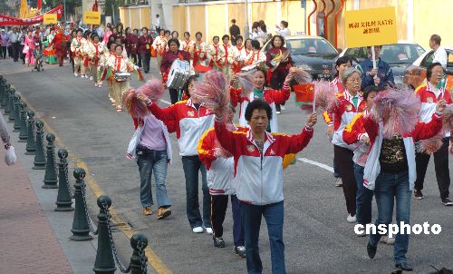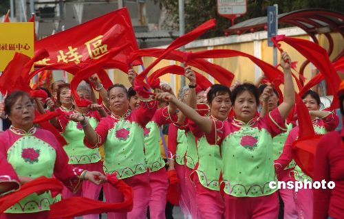 十二月二十日,澳門北區社團組織了慶祝回歸祖國八周年大巡游,兩千余名市民沿街載歌載午,歡慶澳門明天會更美好。 中新社發 史利 攝