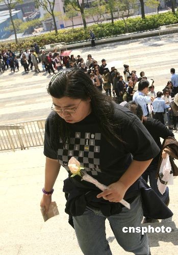 圖:民眾手捧鮮花排隊(duì)入場(chǎng)參加沈殿霞追思會(huì)