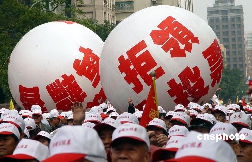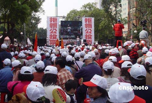 3月8日,臺灣“拒領公投票社會聯盟”在婦女節當日動員了近萬名民眾參與集會,呼吁大家“拒領公投票,回歸正常選舉,反對公投入聯”。中新社發 曾嘉 攝