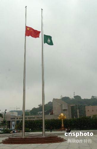 悼念四川地震遇難同胞 澳門降半旗致哀