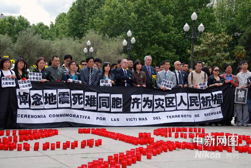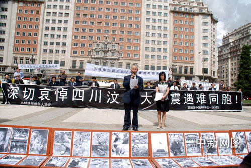 旅居西班牙的華僑華人二十一日在馬德里舉行燭光會(huì),悼念四川汶川地震遇難的同胞。吳衛(wèi)中 攝