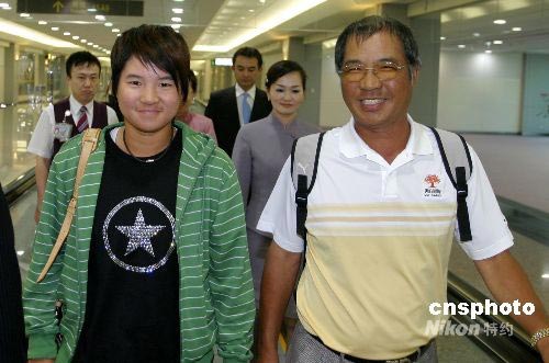 7月1日,贏得高爾夫女子四大賽事冠軍后,十九歲的臺(tái)北高爾夫球小將曾雅妮(左)清晨自美國(guó)返回臺(tái)灣。今年是曾雅妮在女子職業(yè)高爾夫球圈的新秀年,她成為十年來(lái)LPGA(美國(guó)女子職業(yè)高爾夫巡回賽)首位奪得大滿貫的新人,也是首位贏得大滿貫的華人球員。中新社發(fā) CNA 攝