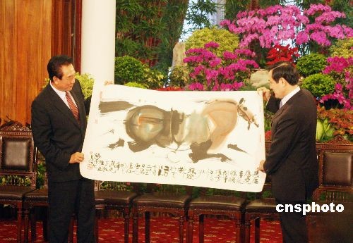 圖:陳云林向馬英九贈送畫作《駿馬圖》