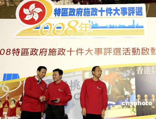 十二月十一日,由二十四家傳媒機(jī)構(gòu)聯(lián)合主辦的“2008年特區(qū)政府施政十件大事評(píng)選“在香港時(shí)代廣場拉開序幕。中新社發(fā) 張勤 攝