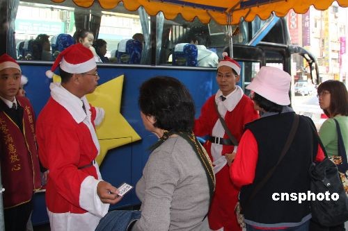 圣誕節近,臺北市公交車服務員也裝扮成圣誕老人,服務民眾。中新社發 陳立宇 攝