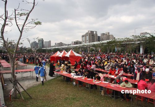 臺北市政府主辦的第五屆“漢字文化節(jié)”于二〇〇九年的第一天在臺北中央藝文公園舉行,吸引了一萬二千多民眾共揮毫迎新年。圖為臺灣地區(qū)領(lǐng)導人馬英九,臺灣立法機構(gòu)負責人王金平和臺北市長郝龍斌等各界人士共同揮毫為新年祈福。中新社發(fā) 路梅 攝