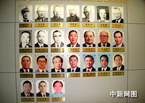 國民黨軍隊歷史文物館現正展出的臺歷任“國防部長”照片。