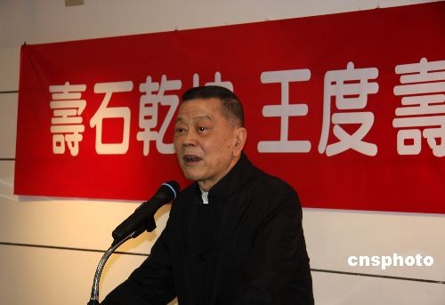 3月14日,壽石乾坤——王度壽山石雕珍藏展開(kāi)幕式在臺(tái)灣“國(guó)父紀(jì)念館”舉行,圖為臺(tái)灣著名收藏家王度在開(kāi)幕式上致辭。此次展覽共展出王度收藏的壽山石雕刻精品200多方。中新社發(fā) 陳立宇 攝