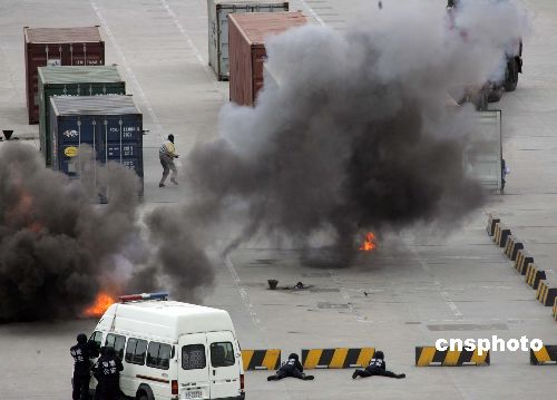 十月三十一日上午,“中國政府履行SOLAS公約二○○七年港口設施保安演習”在上海國際航運中心洋山深水港區舉行。該演習是模擬一個恐怖事件發生并對其進行防范和快速處置的全過程。演習旨在對港口設施保安能力和應急處置水平進行全面檢驗。它的成功不僅標志著中國內地港口設施保安履約工作的新成就,同時也再次向世界宣告:中國港口是安全的。