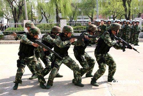 圖:山東公安武警舉行奧運(yùn)反恐演練