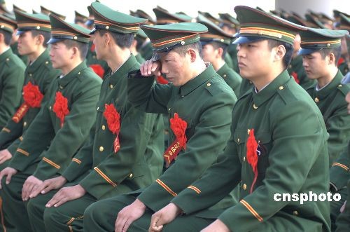 11月24日,武警南京市支隊(duì)舉行退伍士兵歡送儀式,數(shù)百名老兵淚別警營,光榮退伍。隨著分別時(shí)合唱歌聲的響起,在即將離開警營的時(shí)刻,即將退伍的老兵和前來送別的戰(zhàn)士早已淚流滿面。中新社發(fā) 韓華 攝