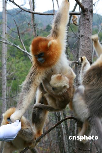 神農(nóng)架川金絲猴人工補(bǔ)食實(shí)驗(yàn)獲成功(圖)