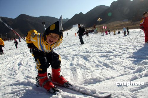 圖為一名兒童在快樂地試滑。12月2日,隨著“陽光冰雪天使”滑雪節(jié)開幕,首都青少年科技戶外運(yùn)動素質(zhì)教育基地在北京八達(dá)嶺滑雪場成立。當(dāng)天的儀式上,百名來自奧運(yùn)建設(shè)一線工人的子女和希望小學(xué)的孩子們,與一千多名滑雪愛好者首批體驗試滑,感受今冬第一場“雪”。中新社發(fā) 張愛東 攝