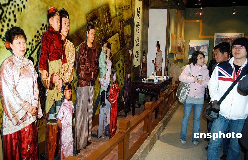 圖為“晉江華僑史館”的兩岸風俗展覽吸引參觀者。