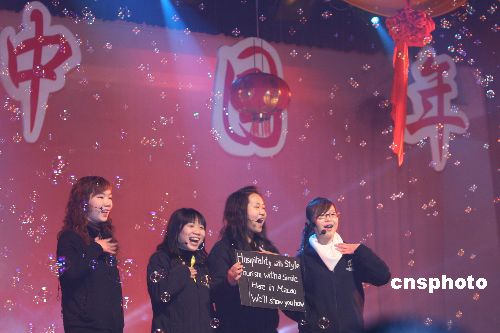 12月26日晚,由澳門大學(xué)等8所高校30名學(xué)生組成的訪問團(tuán)來到江蘇淮陰師范學(xué)院,與該校師生舉行一場(chǎng)“好運(yùn)中國(guó)年”交流演出。中新社發(fā) 蘇杭 攝