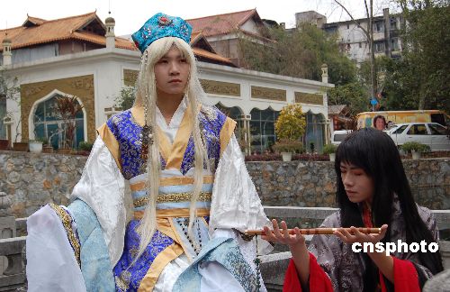 2月12日是農歷大年初六,廣西南寧幾名高中學生在當地的民族文物苑玩起cosplay(動漫真人秀),體驗另類春節的感覺。據悉,自一九九七年cosplay傳入中國以來,迄今全國有cos經驗和參加過cos活動的人數在十萬以上。中新社發 劉萬強 攝