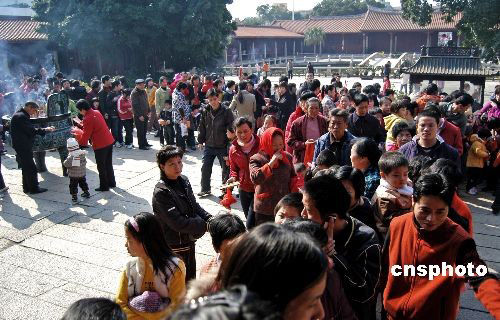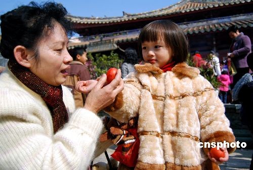 2月15日,福建泉州眾多學子來到泉州府文廟,拜孔子、領紅蛋,祈愿學業有成,這已經成為僑鄉學子新學期開學的第一課。今年,泉州府文廟又準備了七萬紅蛋派送給來自僑鄉各地的廣大學子。中新社發 傅丹丹 攝