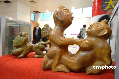 3月8日,30余件性文化展品出現在杭州世貿中心,受到不少市民關注。據悉,2008年首屆中國杭州品質生活與生殖保健產品展覽會在杭舉行,展覽展出保健食品、生殖健康產品、生殖健康宣教制品等。中新社發 引煒 攝