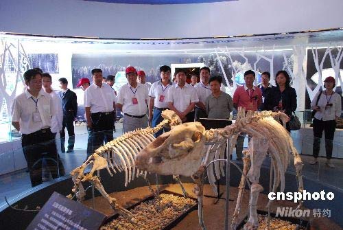 7月13日上午,投資360多萬元建成的喀納斯國家地質公園地質博物館向游客正式開放,圖為首批游客正在館內參觀?{斯國家地質公園是一個以第四紀冰川作用、地質構造作用、水動力作用和地質地貌景觀為主的綜合性地質公園。中新社發 緱燁 攝