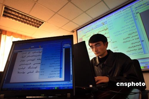 11月19日,中國科學院新疆理化技術研究所的工作人員正在展示該所投資100多萬元人民幣,耗時3年開發完成的維哈柯文辦公軟件。據了解,該軟件是針對新疆少數民族語言文字特點與信息處理應用的需求,而研發的維哈柯文辦公軟件,具有多語種(維、哈、柯、漢、英)、跨平臺(國產Linux和Windows平臺)、兼容性好、具有自主知識產權的多語種辦公套件。該軟件研發完成后進入市場化運作,已實現經濟效益500多萬元人民幣,并對新疆60多個縣市,6000多名少數民族使用者進行了培訓。中新社發 劉新 攝