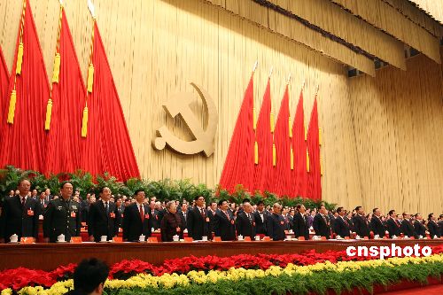 十月二十一日,中國共產黨第十七次全國代表大會在北京人民大會堂隆重閉幕。中新社發 毛建軍 攝