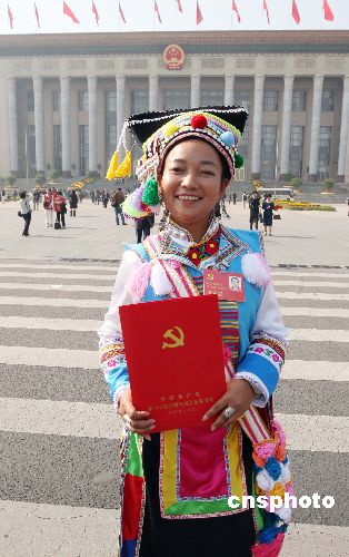 圖:中共十七大閉幕 布朗族女代表走出會場