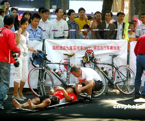 圖:環海南公路自行車賽 記者與三賽手相撞(2)