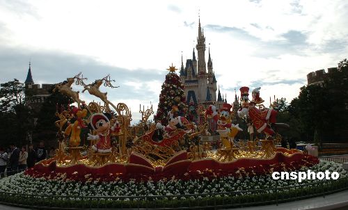 圖為東京迪斯尼樂園內(nèi)高16米的巨型圣誕樹。