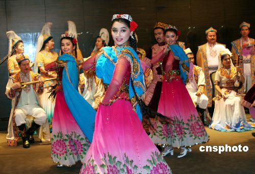 11月14日,新疆木卡姆藝術團部分成員在臺北向媒體展示木卡姆六個片斷,引起臺灣眾記者的濃厚興趣。作為“人類口述非物質文化遺產”,木卡姆藝術集歌、樂、舞于一體,具有濃郁的西域特色。藝術團于12日抵臺訪問,在25日離臺前將臺北、臺中、新竹、彰化等演出6場,帶給臺灣觀眾廣受好評的《木卡姆的春天》,演出內容包括烏夏克、吐魯番、哈密、刀朗木卡姆等歌舞樂薈萃,以歌詠愛情為主。中新社發(fā) 黃少華 攝
