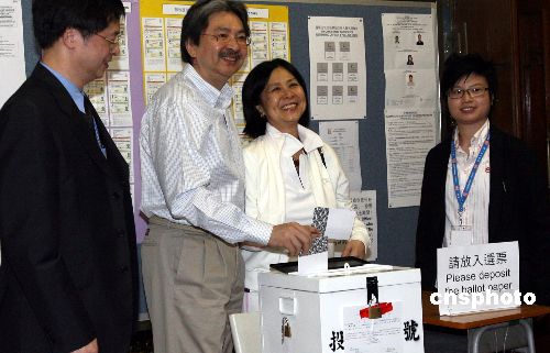 ·香港區議會選舉舉行 曾蔭權吁市民踴躍投票(圖)