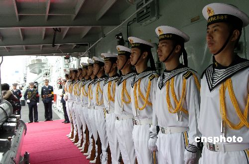 圖:等待檢閱的“深圳”號儀仗隊