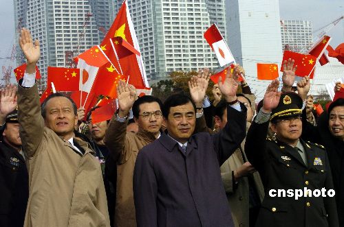 12月1日,中國海軍“深圳”號結束對日本為期四天的友好訪問啟程回國。中國駐日使館工作人員在大使崔天凱(左)、公使孔鉉佑(中)、武官徐京明(右)的帶領下趕往碼頭歡送艦上官兵。中新社發 朱沿華 攝
