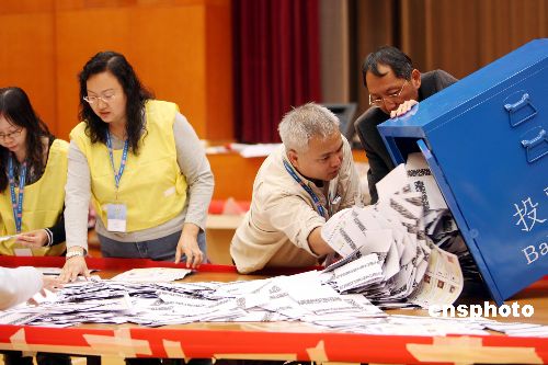 香港立法會港島區補選票站內點票工作緊張展開(3)