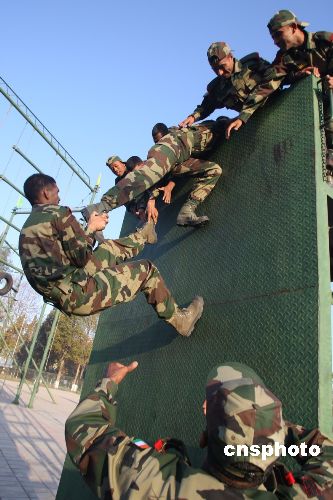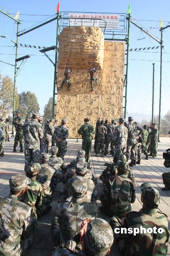 圖為中印士兵在進(jìn)行攀巖訓(xùn)練。