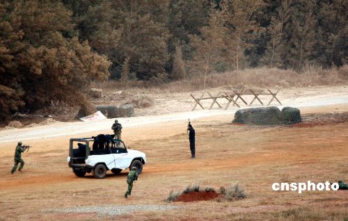12月25日 “攜手-2007”中印陸軍聯合反恐訓練圓滿結束。隨著實兵綜合演練課目的完成,中印兩軍舉行了簡短而熱烈的訓練結束儀式。中新社發 張雷 攝