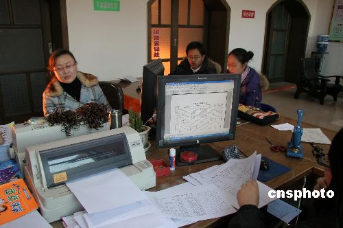 12月29日,山西陽(yáng)城縣民政局婚姻登記所工作人員在為準(zhǔn)備新年結(jié)婚的青年登記忙碌。據(jù)陽(yáng)城縣婚姻登記所工作人員介紹,2007年12月份結(jié)婚登記的青年不少,最多時(shí)一天有27對(duì)青年登記。中新社發(fā) 馬宏泰 攝