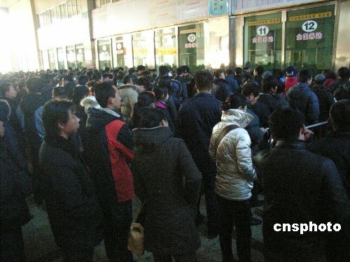 2月15日,人們在齊齊哈爾火車站售票大廳購票。當日,齊齊哈爾火車站在探親返城客流和農民工客流出現高峰后,又迎來學生客流高峰,日送來往旅客達2.5萬人。為緩解購票難,車站增加了應急售票窗口,車站派出所派出警力24小時巡查,并在廣場設置一臺報警服務車,隨時為旅客提供服務。 中新社發 王云龍 攝
