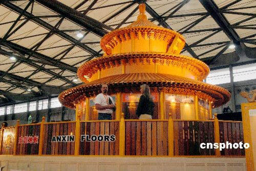 圖:硬木地板"天壇祈年殿"亮相"地博會(huì)"