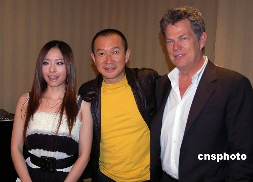 3月19日下午,著名華人作曲家譚盾與美國著名音樂制作人大衛·福斯特、“超女”張靚穎在北京亮相,向媒體介紹由他與大衛·福斯特共同創作、張靚穎和世界著名盲人歌唱家安德烈·波切利主唱的北京奧運會候選主題歌《擁抱愛的明天》。據悉,譚盾為了創作這首歌,用了八年時間進行構思,經過十八次修改,最終于今年春節大年初一在美國洛杉磯錄制完成。這首歌曲堪稱是中西文化相互融合的精典作品之一,并于三月十日北京奧運會主題歌征集的最后一天送交北京奧組委。中新社發 潘旭臨 攝