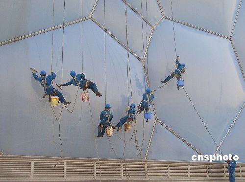 組圖:“蜘蛛俠”為水立方“洗臉”