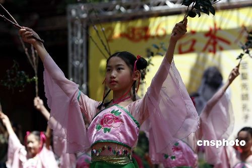 圖為臺南大學附屬小學的學童為茶禮揭開序幕。中新社發 杜洋 攝
