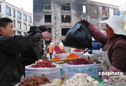圖:暴力摧殘的拉薩沖賽康市場(chǎng)恢復(fù)營(yíng)業(yè)