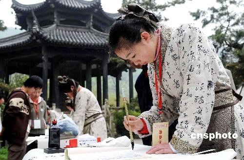 圖:中日韓書法家紹興蘭亭潑墨(4)