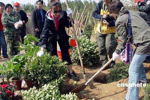四月九日,日本青年同鄭州青年志愿者在中國河南黃河岸邊共同植樹。當(dāng)日,以日本日中友好協(xié)會副會長、靜岡縣日中友好協(xié)會會長鈴木重郎為團(tuán)長的日本靜岡縣綠化合作訪華團(tuán)一行三十九人,與河南鄭州惠濟(jì)區(qū)二百余名青年志愿者在黃河岸邊邙嶺共植新綠。中新社發(fā) 李志全 攝