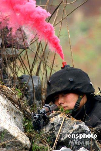 4月16日,武警武漢指揮學(xué)院學(xué)員在野外進行戰(zhàn)術(shù)演練。為使演練更加貼近實際,學(xué)院將實兵對抗模擬系統(tǒng)用于演練,進一步增強了戰(zhàn)斗的真實性,對錘煉學(xué)員的戰(zhàn)術(shù)意識、戰(zhàn)術(shù)動作、作戰(zhàn)指揮將起到有力的促進作用 。在演練中,雙方學(xué)員身著作戰(zhàn)服及頭盔,一旦被擊中,服飾將發(fā)出語音警示或散發(fā)煙霧,且武器自行關(guān)閉、不能射擊,類似實戰(zhàn)“死亡”,以達(dá)到退出演練的效果。中新社發(fā) 傳榮 攝