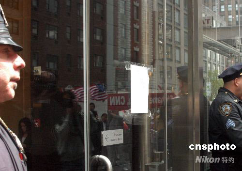 數(shù)百名華人及留學(xué)生二十一日在美國(guó)有限電視新聞網(wǎng)(CNN)駐紐約辦公樓附近游行,抗議CNN辱華報(bào)道,并將抗議書(shū)貼在CNN門(mén)前。中新社發(fā) 李靜 攝